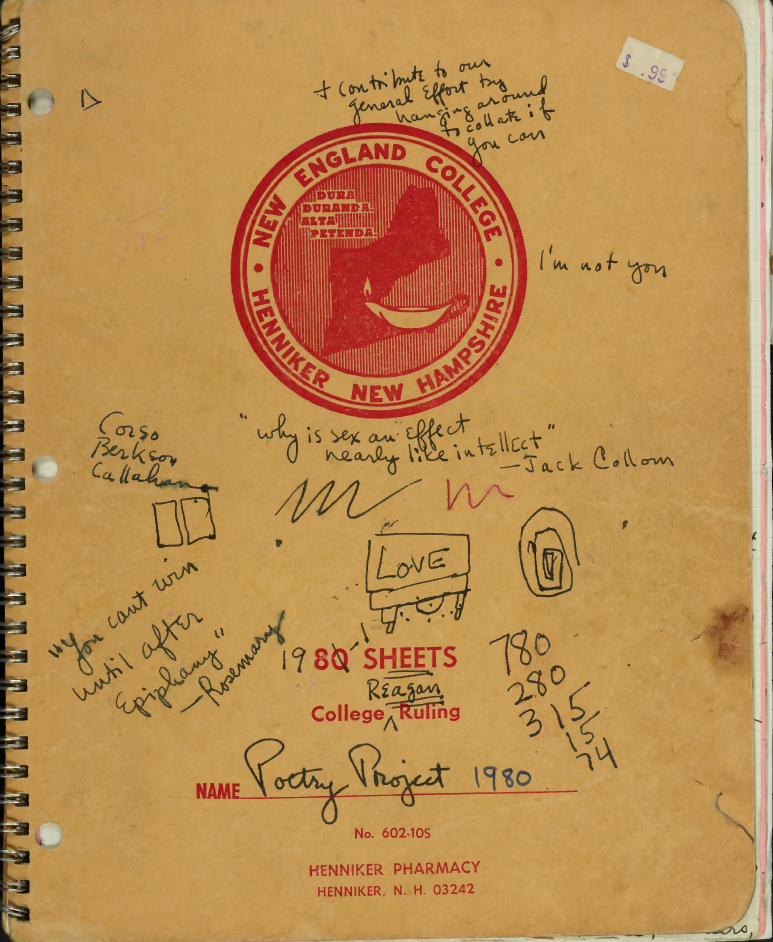 By the end of the decade, inspired largely by Notley and Berrigan, more than a dozen young poets from Chicago had moved to New York to join the community around The Poetry Project at St. Mark’ s Church in-the-Bowery, a dense Midwestern migration lovingly described as “the Chicago Invasion” by Bob Holman, who had himself moved from Chicago to New York in 1973. While Ashbery eschewed the New York School as a label, Berrigan, who was well versed in the term’s aesthetic history, including its origins as a “complicated double joke,” embraced it. He is famous for jokingly recruiting young poets to New York School–style poetics, claiming “I used to tell people they could join [the New York School] for five dollars.” While this humorous sense of low-stakes permission accurately describes Berrigan’s model for how to disavow aesthetic gatekeeping in favor of more raucous and inclusive communities, studying his direct interventions in the lives of his students—particularly through the small presses and little magazines he encouraged those poets to edit—offers a more vivid portrait of Berrigan’s perpetuation of the New York School through its corresponding print cultures.